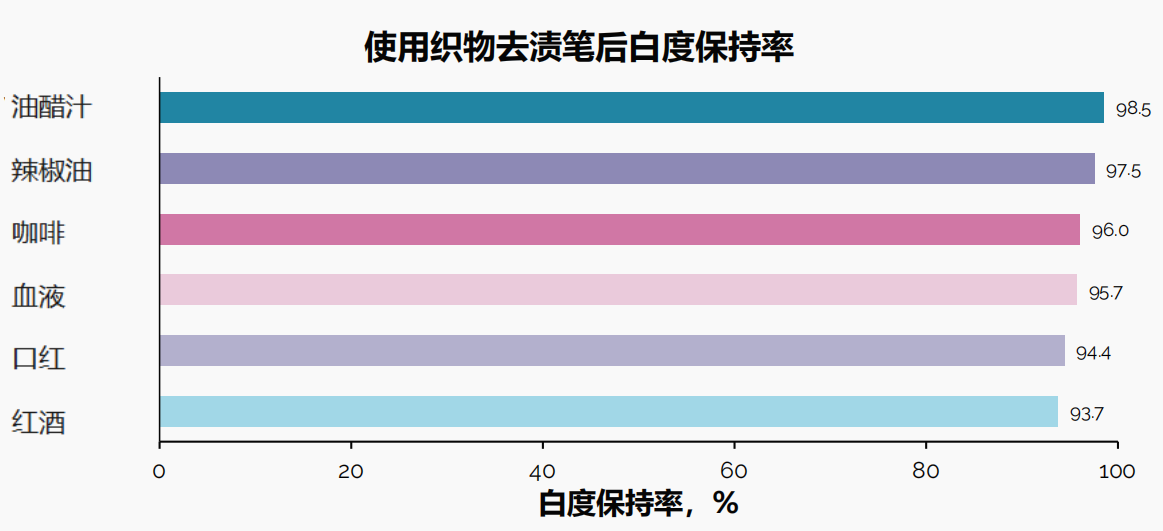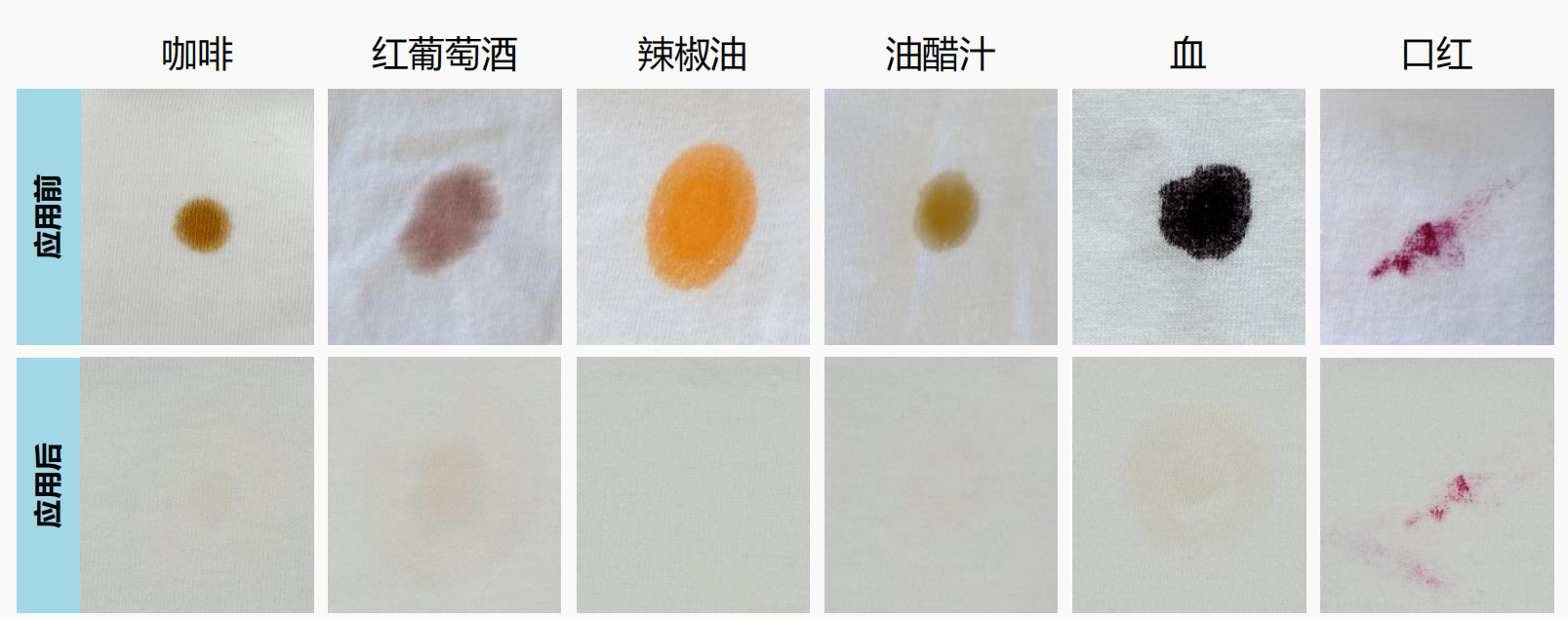 去除醋汁污漬和辣椒油污漬去除效果最高。